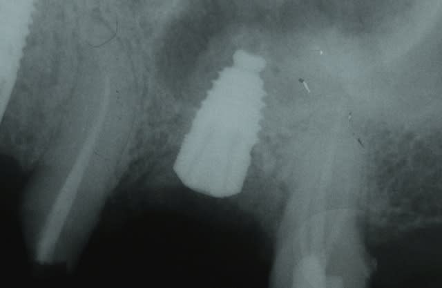 > Tiens jette un coup d'oeil sur la partie mésial de cet implant sans comblement