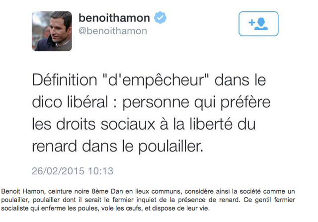Je n'ai jamais voté pour eux. Je ne cautionne pas le systeme: oligarchie, nepostisme, compte en suisse, exil fiscal des grosse boite vs artisans étranglés, referendum europeen jeté au chiotte, traité tafta négocié dans notre dos etc etc. Obligé de vivre avec oui, cautionner ou voter: non.