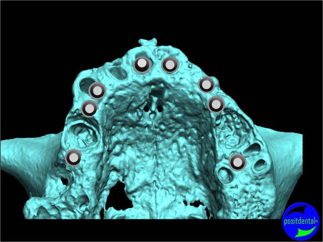 - 8 implants 4 à 25° et 4 à 0°