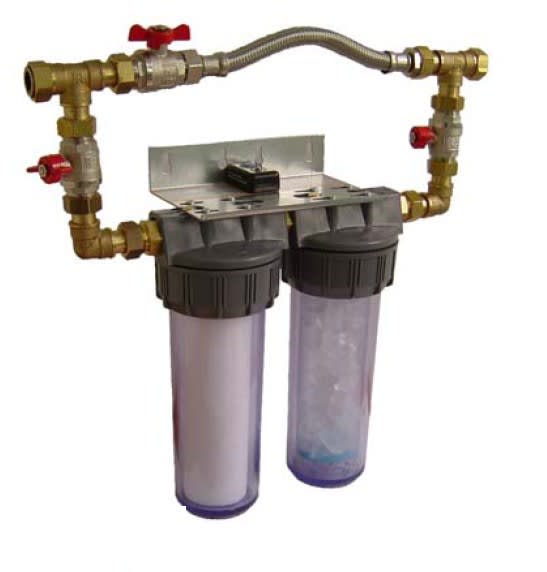 1.le "kit anticalcaire" : c'est à dire les deux cartouches cote à cote l'une filtrante et l'autre anticalcaire, avec by-pass