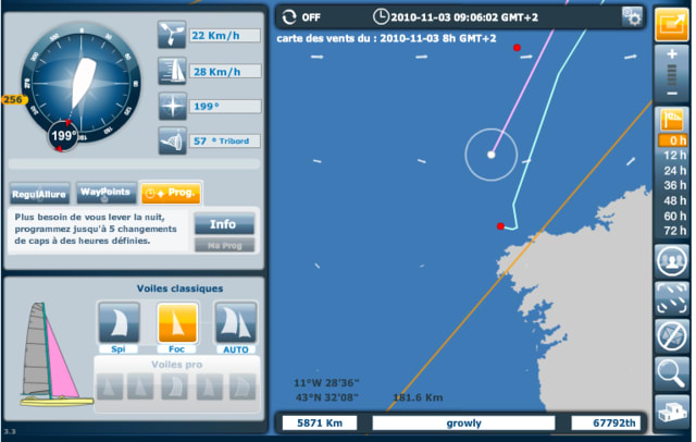 je me suis enfin décidée : je pars tres en retard, comme Hebken, pour le fun. j'ai comme souvenir de n'avoir pas beaucoup dormi lors du vendée globe, alors là je vais essayer de resiter à l'addiction !