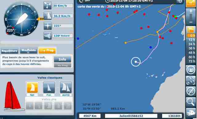 L'option de Jeff2 était très gonflée, mais elle semble assez futée... s'il arrive à passer sous la pétole qui plante le gros de la troupe sur la route nord il confortera sa formidable remontée.