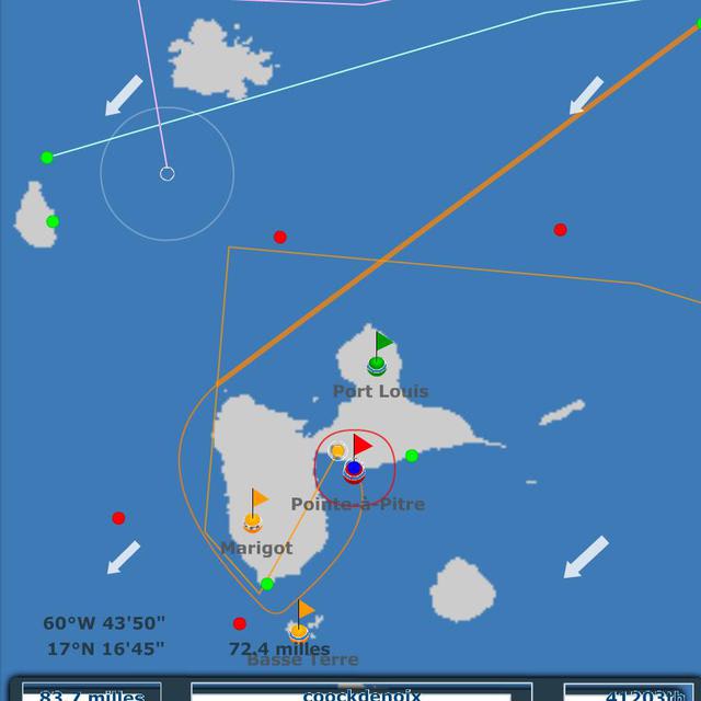 J'observe que le jeu est un peu pourrave au niveau de la prise en compte des terres puisque que naubru340 c'est nuitament aéroporté au dessus de la Guadeloupe (hyper jump en kite? :)))pour aller se crasher (ou traverser à son tour?) Monserrat.