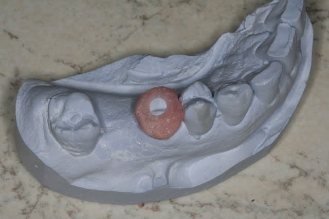 Tu dois d'abord faire une empreinte pas trop pmal, fabriquer les coquille, faire revenir le patient et refaire enpreinte ? Double anesthésie, gestion provisoire, etc.