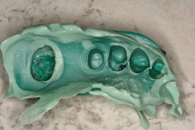 le "truc" marche aussi pour les empreintes mordues sectorielles, et çà m'a permis, pour des patients yoyoteurs+++ de faire des empreintes de bridge même de grande étendues sans qu'ils ramènent les repas de la semaine...