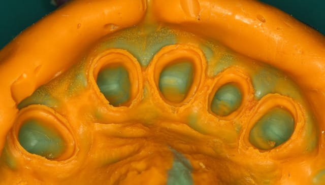 Pluton, je suis ok avec la technique monophase ou il n'y a pas de rebasage au light. Il s'agit d'une technique d'empreinte segmentée en un temps suivi d'une surempreinte de situation. Je suppose que le matériau monophase est de viscosité relativement faible ? (jamais pratiqué)