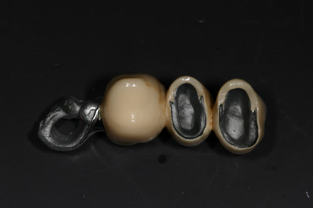 ... inlay métal scellé/collé avec fraisage type attachement glissière femelle recevant son contre mâle solidaire du bridge.