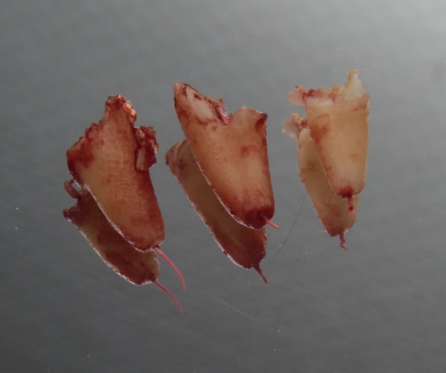 > dents qui sont en train de se nécroser au niveau de leur pulpe radiculaire avec