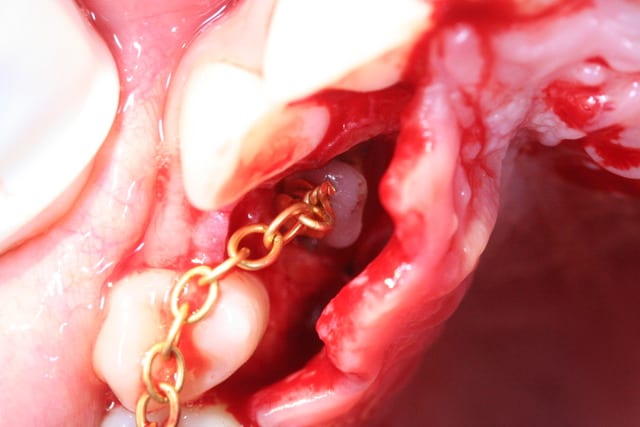 Extraction d'un 23 incluse sous AG pour réimplantation immédiate avec un stomato.