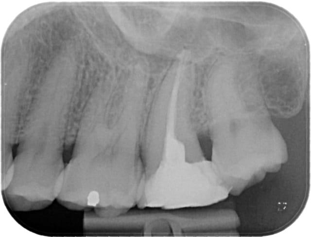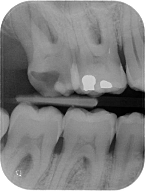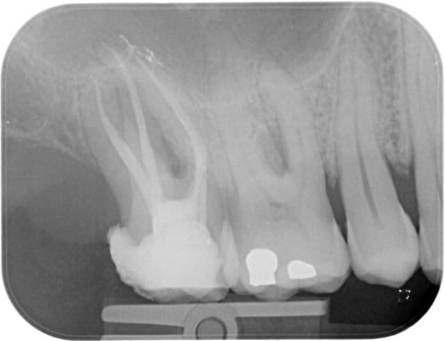 C'est quoi le petit truc au bout du distal ? je vois mal: de la gutta tire bouchonnée ou un fragment d'instrument
