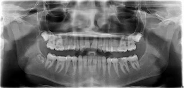 2°) pour une gamine de 13 ans, la denture est plutôt avancée, d'où pour moi la difficulté de mésialer la 37 correctement.