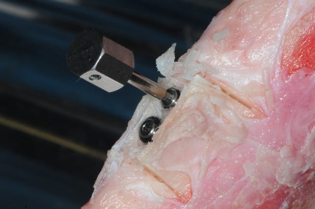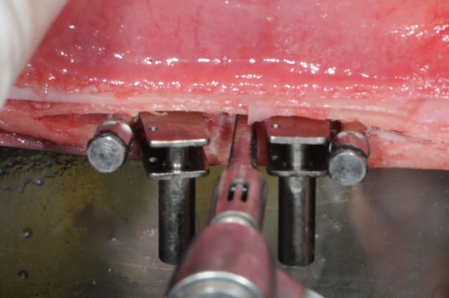 > osseux entre en légère compression, pas besoin de vis au contraire ... au marteau...attendre 4 mois de préférence et pose de l'implant