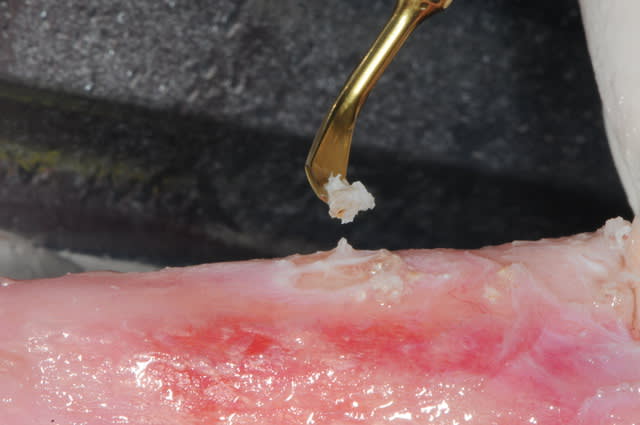 > On peut parfaitement apprécier le comblement naturel de l'alvéole accompagné de