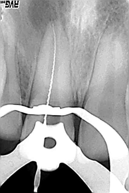 Malheureusement, la dent était nécrosée. Elle a été vue par le confrère de garde dimanche dernier qui a ouvert la chambre. J'ai fait l'endo aujourd'hui.