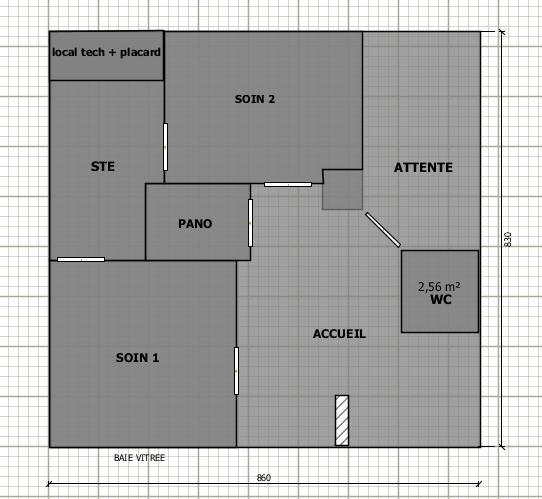 Encore merci pour tous vos conseils ! Le nouveau plan avec 2 salles de soins est bientôt prêt.