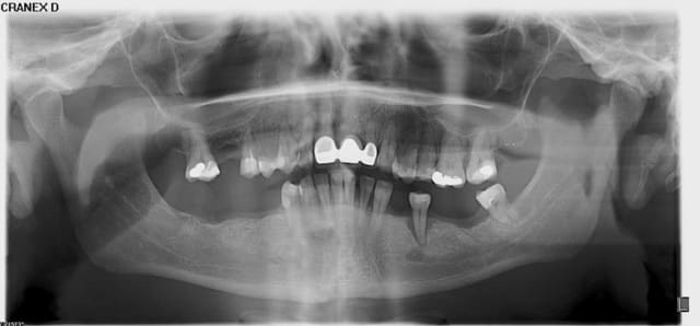 Il et clair Pp que le cas que tu nous montres est dramatique. D'autant plus dramatique que la solution implantaire ne sera malheureusement pas une solution de long terme.