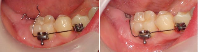 Une ligature de traction peut se rabattre. les nombreuses pliures sur l’arc T.M.A. montrent la difficulté d’une mise en forme en bouche, même pour quelqu’un d’aussi expérimenté que Dancha
