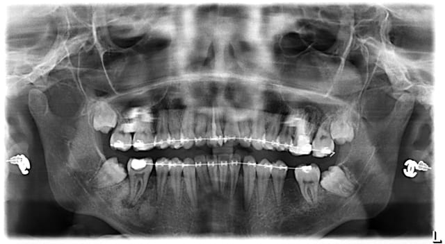 beau travail, on ne voit même plus de traces de cicatrice d’incision, la chirurgie de dégagement ne doit pas être récente, tu es sur que la dent est ankylosée ? Essaye avec un arc carré 16*x16*, immobilisé en rotation dans le tube de 46 et le Bk. de 44 par de la résine, peut être que ta dent va se désankyloser …
