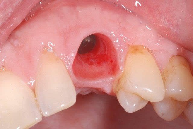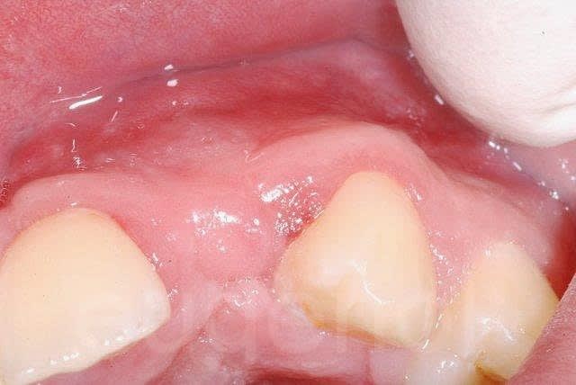 L'implant est un 3.7 x 12 mm, j'aurais pu poser un 4.2 mais j'aime bien garder une bonne épaisseur d'os autour de l'implant et notamment en vestibulaire. La temporisation est assurée par un petit partiel amovible qu'il portait déjà depuis plusieurs années. Le challenge maintenant est, à la mise en fonction, de réaliser une dent provisoire anatomique afin de préparer une belle émergence gingivale (par exemple comme ce cas de canine sur les 2 photos que je vous joins avec ce post) et obtenir ainsi un résultat final le plus naturel possible.