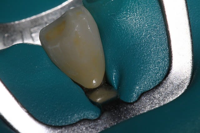 Pour un patient bruxomane, mon prothésiste m'a proposé une facette en zircone translucide de dureté réduite sur une 33, il s’agit du Zenotec (Wieland Dental System) utilisé en Allemagne depuis quelques années.