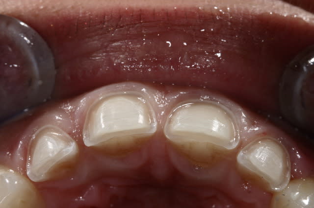 > au G bond, sans mordancage de la dent pour éviter les sensibilités.