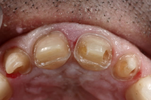 > photos de tailles de facettes, la dent est tellement délabrée pour obtenir un
