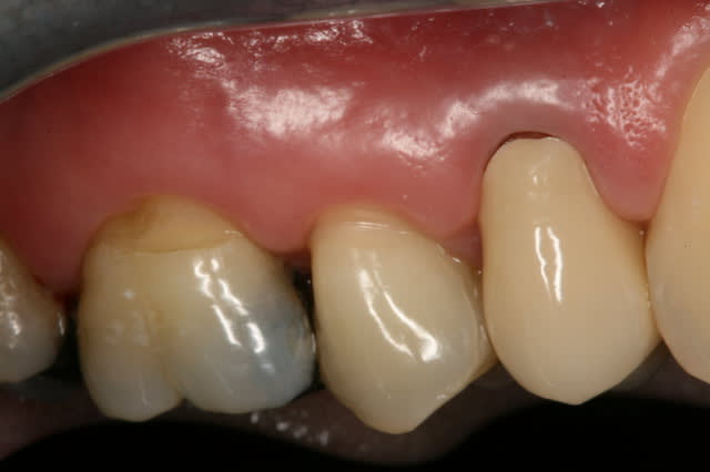 est très beau Ceram, ma photo à deux semaines pour le premier cas à venir... Lava sur 14, pas de lacune, racine très foncée post-endo. A quel fréquence revois-tu tes greffes conjonctive en post-op? idem pour alloderme??