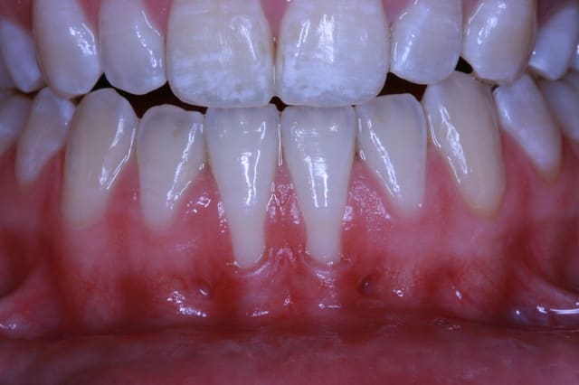 comme le cas montré (dépose des sutures 1 min avant la photo et pas nettoyé les dents...photo moche, mais fait entre 2 chirurgies...moins de 5 min...)