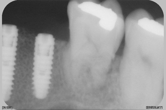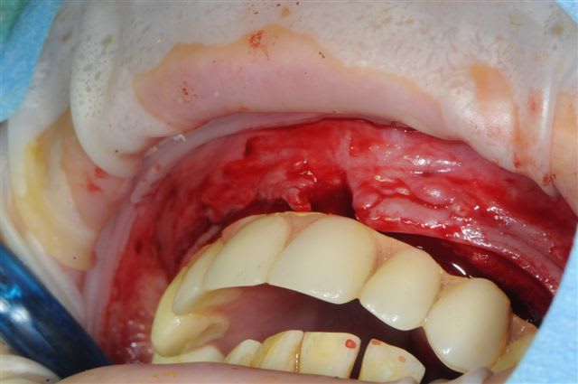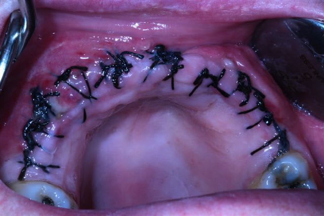 Dépêche toi de lui poser des implants car les stellites se tassent tjs et son bloc antérieur mandibulaire peut tout déchiquetter ton beau travail d implanto, d autant plus fort que tu n as pas épaissi secondairement ton mur vestibulaire que tu disais toi même manquer de bombé...