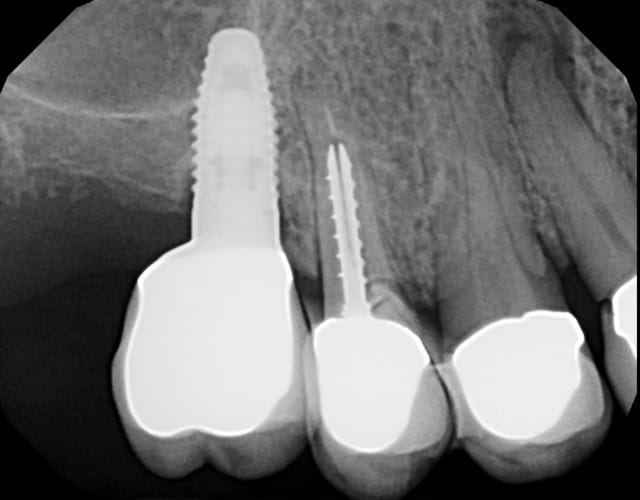 Les implants datent de 5-6 ans (par un autre CD, la patiente a depuis déménagée).