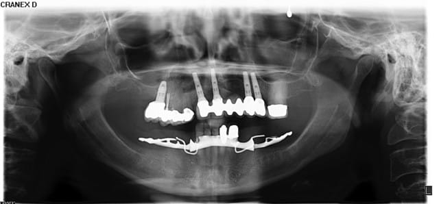 Panorex avec Vitallium en bouche ok... au moins on sait que la patiente possède un partiel...