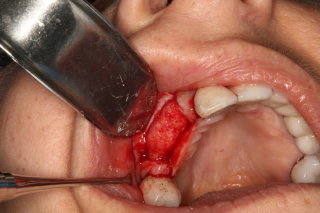 Il y avait pas de gencive attachée au buccal de la zone.