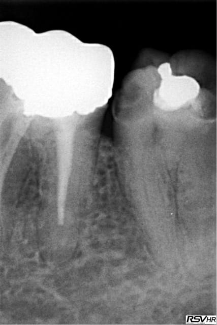 Ah ben moi pas du tout ! ;-) Parce que je ne vois pas le rapport entre être omnipraticien ou exclusif et choisir de faire un traitement moyen juste par "paresse". Parce que vue la radio postop, il y avait largement la possibilité de faire un traitement top niveau. Je ne parle que du manque d"étanchéité qui vient malheureusement ruiner le pronostic du traitement à long terme. Je subodore que les temps d'action des irriguants en fin de préparation mécanique ont été respectés, car là aussi, on peut craindre que trop souvent des traitements radiographiquement corrects voir excellents ne le sont pas autant qu'il n'y paraissent juste par un manque de désinfection chimique.