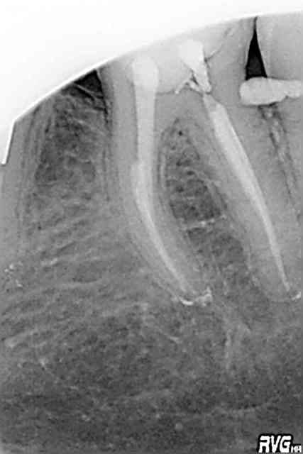 en reprenant la radio peux tu penser que la dent baignait dans la salive pour pouvoir obturer de la sorte ?