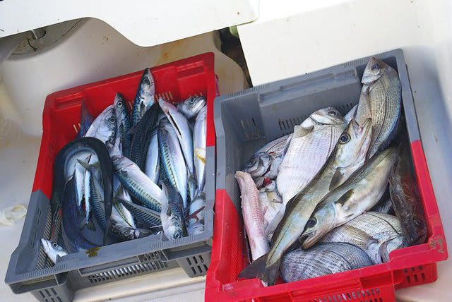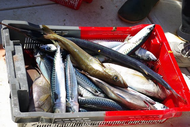 En ce moment, très peu de bars.. comme bons poissons: de la dorade, du lieu mais pas de bar. sinon, maquereaux, aiguillettes, roussettes, raies etc...