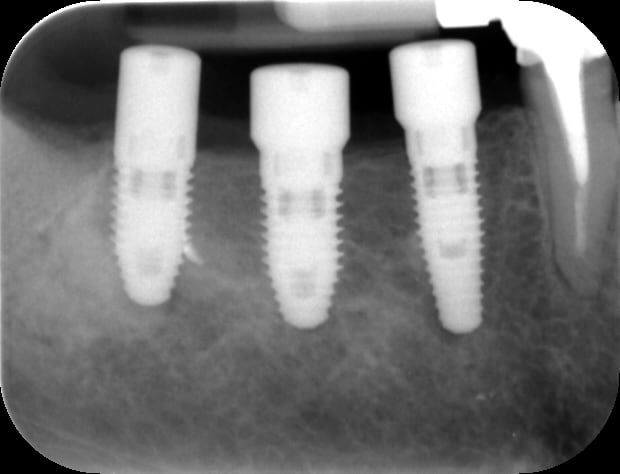 Je pense aussi que l'apex des implants est dans la corticale linguale