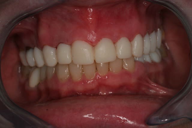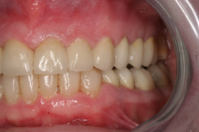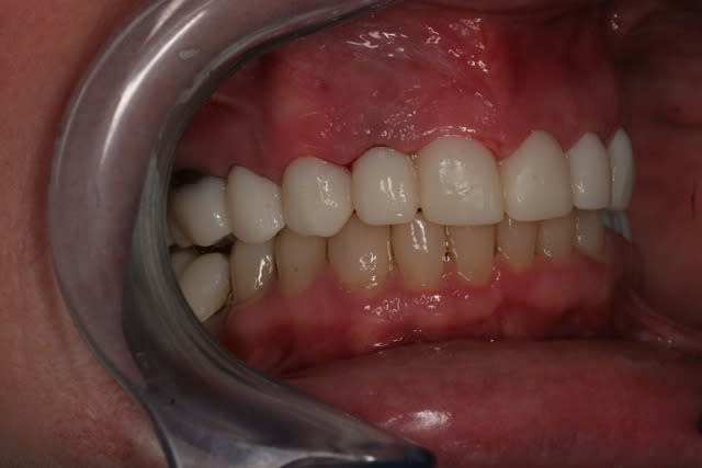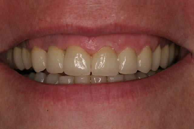 C'est court mais la patiente est très ronde, plus de 60 ans, sourire gingival, j'ai hésitais à réaliser de vrai élongation coronaire prévu au départ qui finalement aurrait donner de vrai "pelle à tarte" qui ne lui correspondait pas