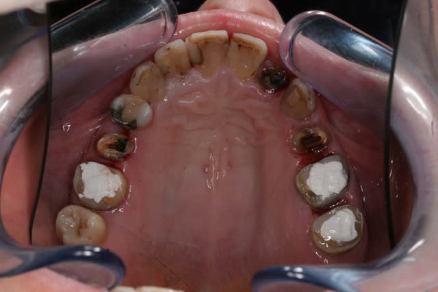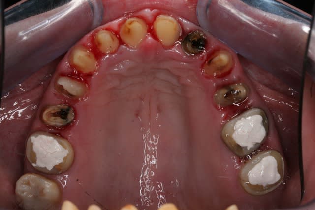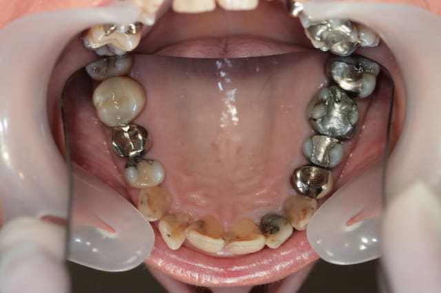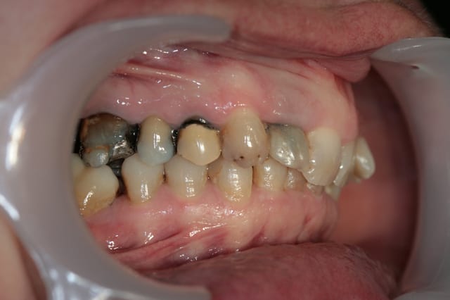 > Tous est à refaire dans cette bouche, amalgames horibles, couronne brisée, etc