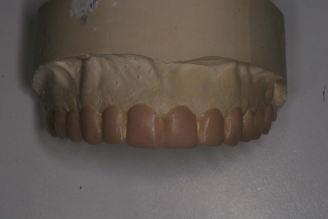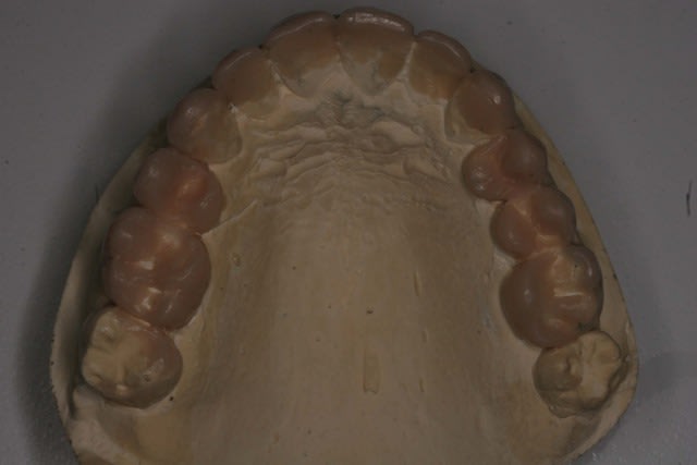 Voila la suite pour le maxillaire, le wax est fait sur arti en fonction de l'OIM obtenue après ortho. seule la 27 restera intacte.