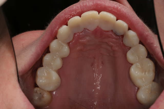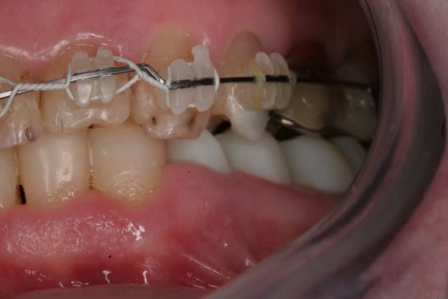 Photos après dépose du haut. Comme dit dans précédent post, le bas avait été déposé quelques semaines auparavant et préparé entre temps, d'où contention, composites et provisoires déjà en place.