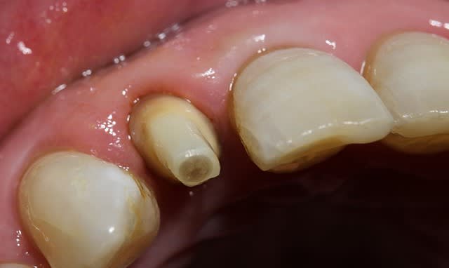 le fait qu'il y ait un ancrage radic ou que la dent soit devitalisséee est sans importance.