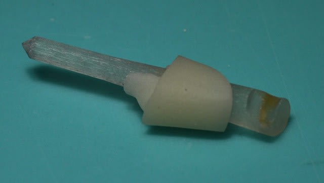 > leur tenons en fibre de verre pour du indirecte. Du coup, je prend l'empreinte