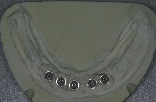 > trois implants dans la symphyse entre les trous mentonniers et deux autres aprés