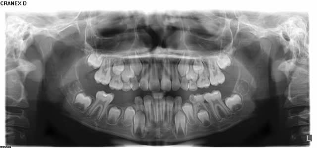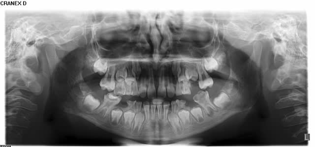 L'enfant a 9 ans : compare les molaires du haut avec les pano d'enfants du même age ci-dessous.