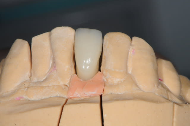 Ingénieux aussi : l'impaction du pilier avec la céramique grâce au scellement propre extra-oral.