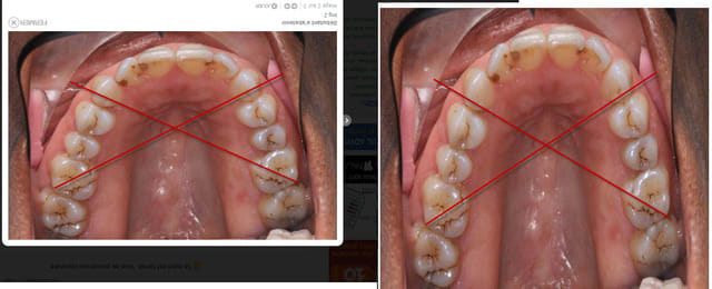 Le plan incliné induit par cet expansion incontrôlée a provoqué une déviation mandibulaire à gauche, telle qu'on la constate sur les photos de face. CQFD.