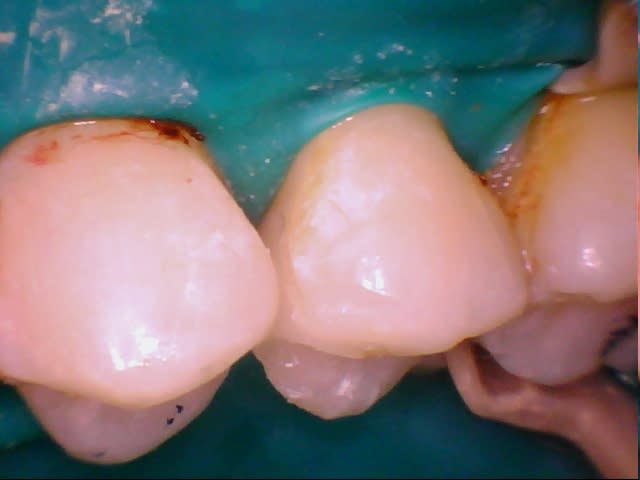 (Il ne s'agit pas d'une critique de confrère, je prèfère cent fois quelqu'un qui soigne une carie comme ça qu'un autre qui foule 2 couches de compo sans digue)