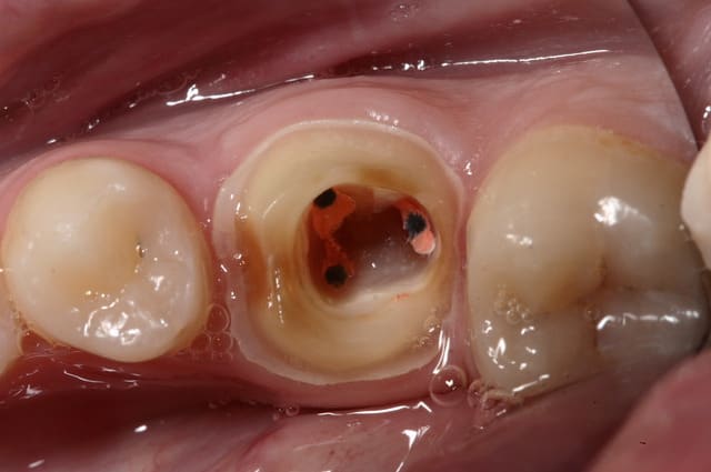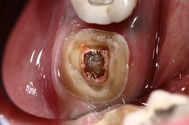 Mais dans un nombre important de cas, la rétention de la chambre pulpaire sera plus importante que la rétention obtenu par un faux moignon, notamment sur les dents postérieures où l'on a perdu de l'espace prothétique.