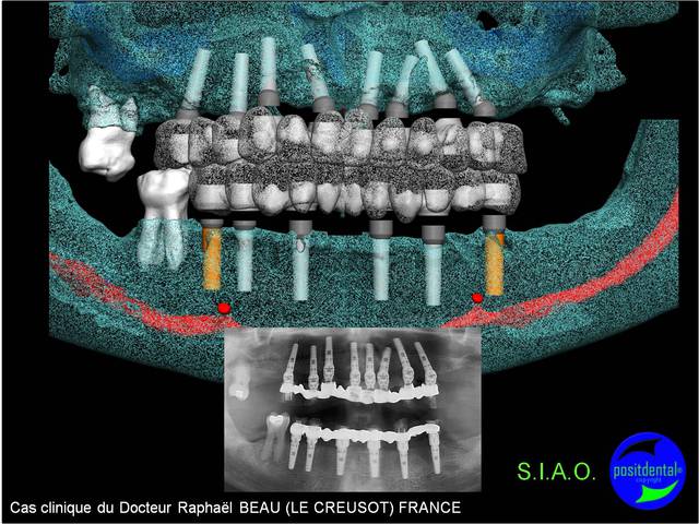 Selon quel referentiel positionnez vous le guide? pour boetien, j'imagine par rapport à la mandibule avec une clé (un peu comme http://www.nobelbiocare.com/fr/resource-library/cases/cases-new.aspx , vidéo de Giovanni Polizz ), mais concernant l'intervention de pluton est ce pour ca qu'il reste deux molaires? ou alors juste avec l'adaptation osseuse, qui a été extrapolée avec un logiciel?