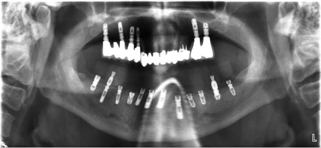 Il considère qu'avec l’absence de micros mouvements des implants Leone , il a posé un implant de 21mm et que les 14mm vissés dans l'os vont assurer un bonne stabilité primaire